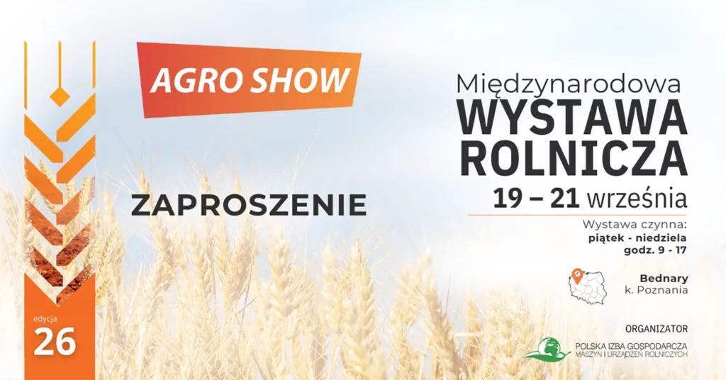 Z radością ogłaszamy, że w dniach 19–21 września 2025 roku firma AGE-POWER będzie obecna na AGRO SHOW w Bednarach pod Poznaniem – największej wystawie rolniczej w Europie. To prestiżowe wydarzenie, organizowane przez Polską Izbę Gospodarczą Maszyn i Urządzeń Rolniczych, od ponad 20 lat gromadzi przedstawicieli branży, stając się obowiązkowym punktem w kalendarzu rolników i producentów nowoczesnych technologii.